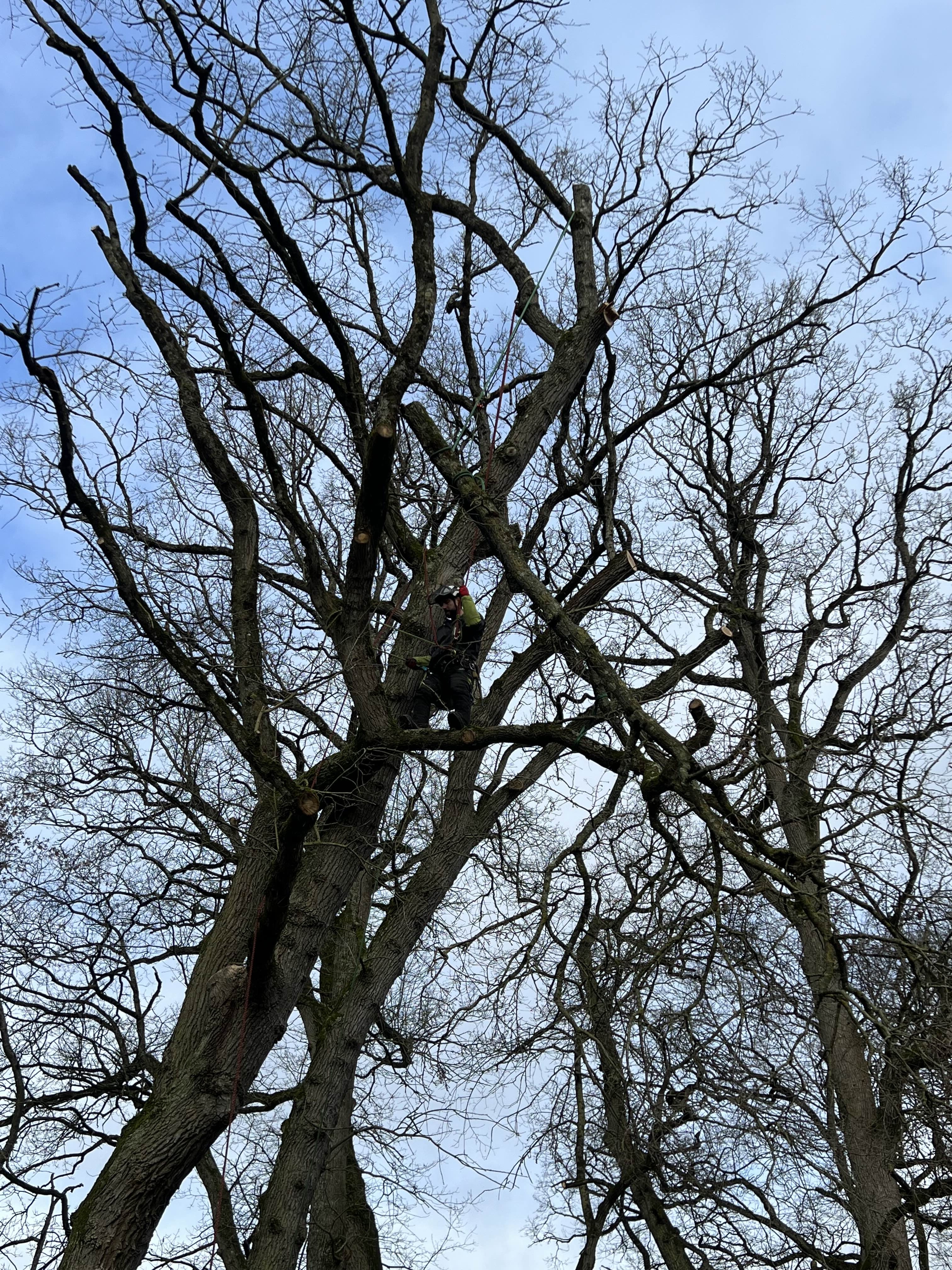Intervention en hauteur par un grimpeur élagueur,