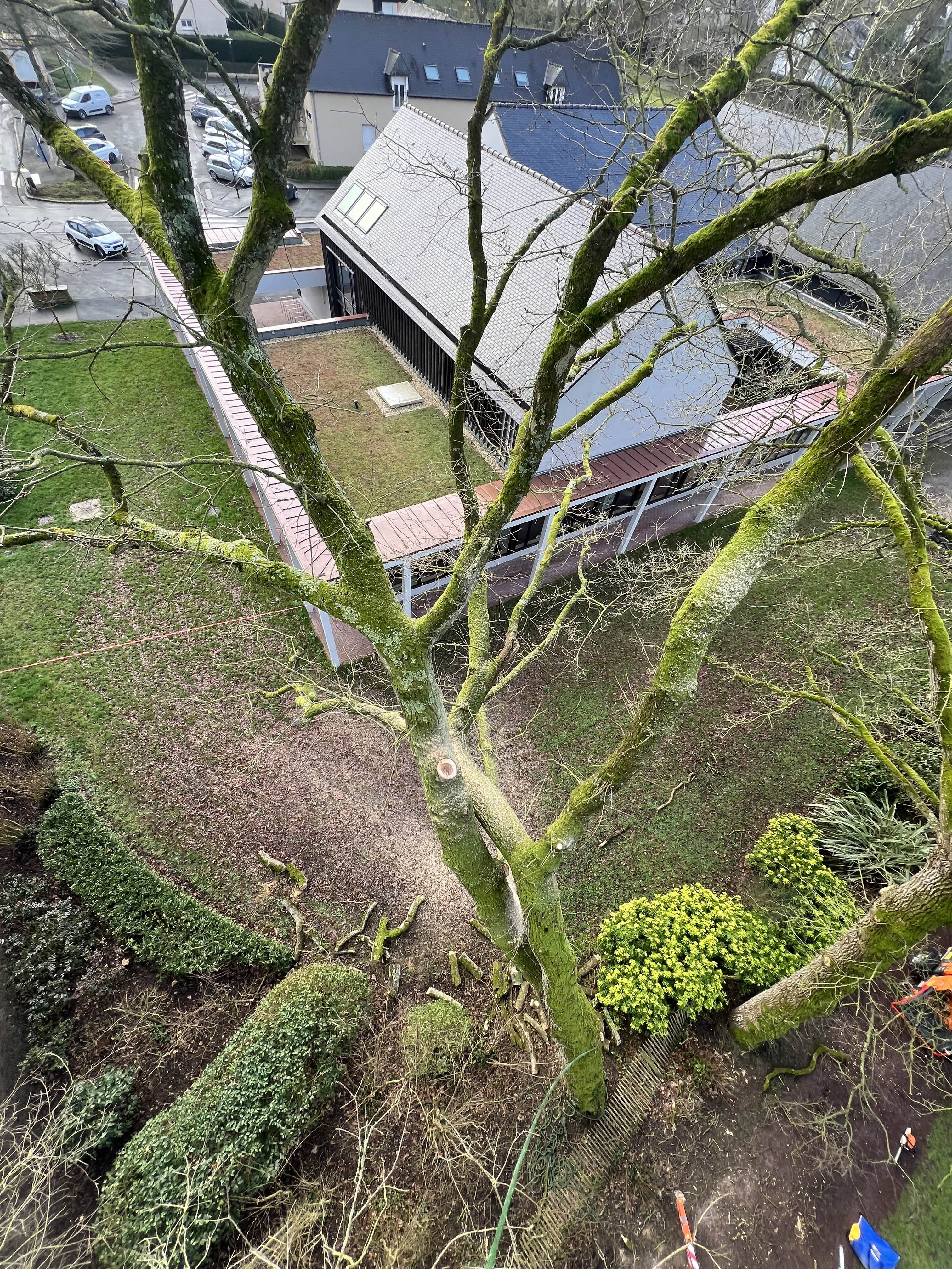 vers Kerfontaine et la zone d’activités, où l’abattage et le rognage de souches accompagnent les projets d’aménagement ;